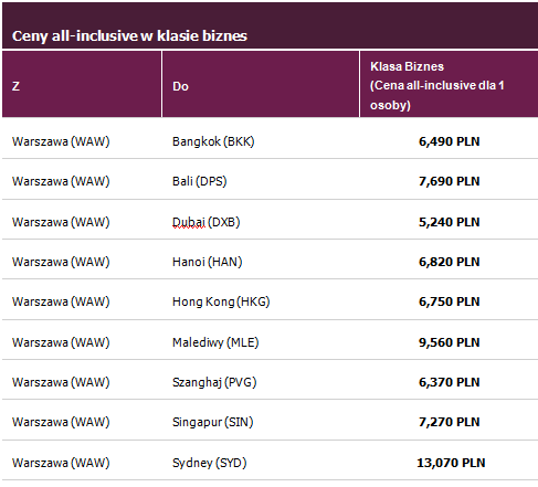 Klasa biznes – atrakcyjna zniżka na przeloty dla osoby towarzyszącej! Oferta ważna do 7 sierpnia na podróże od 4 sierpnia 2016 do 31 marca 2017.