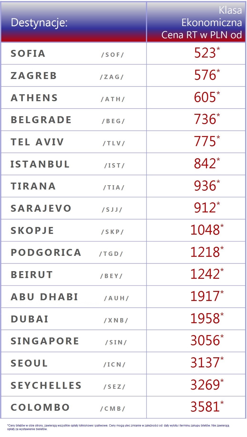 Szczegółowe informacje dostępne w naszym biurze DD AIR TRAVEL