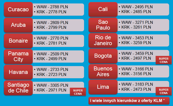 Stawki grupowe KLM do Ameryki Południowej i Środkowej oraz Antyli Holenderskich!